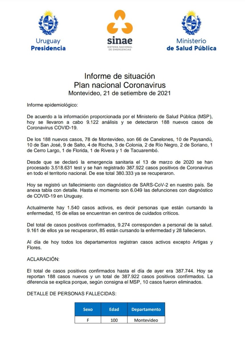 El número total de casos es el número acumulado de casos de COVID-19 e incluye casos probables así como aquellos confirmados por las pruebas.